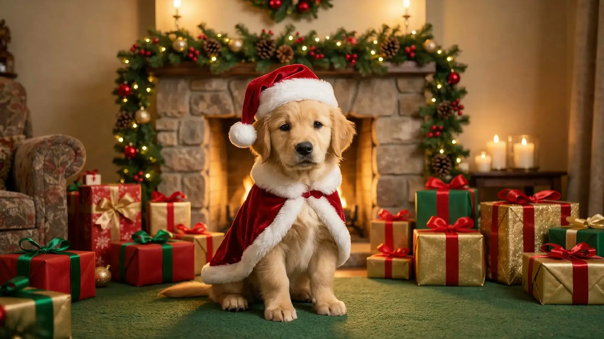 Un retrato navideño cálido para tu mascota